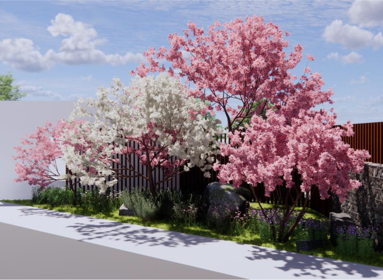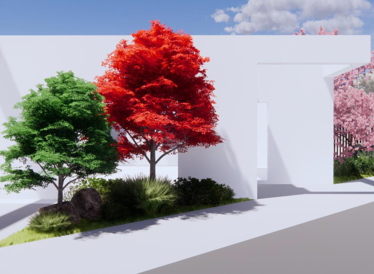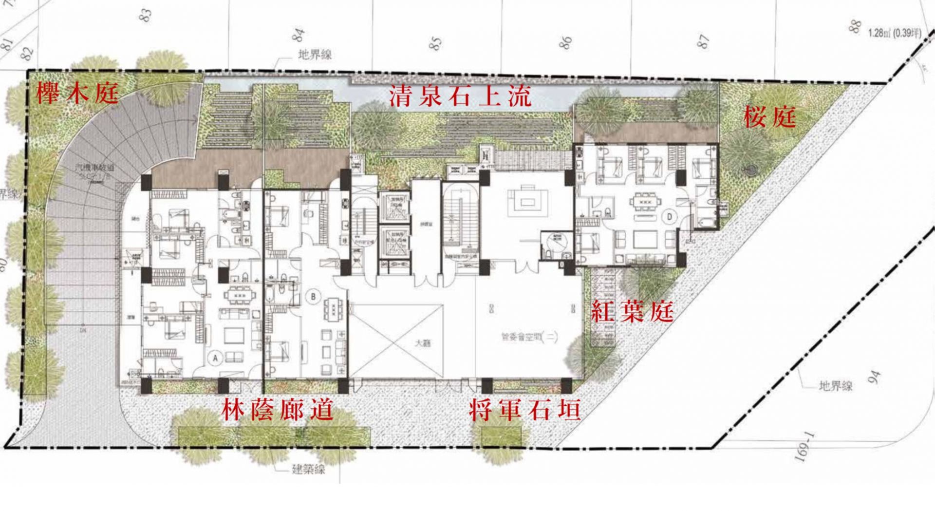 法定空地集中留設小型綠景,種植區域原生樹種,大幅提升周邊生活品質與步行體驗