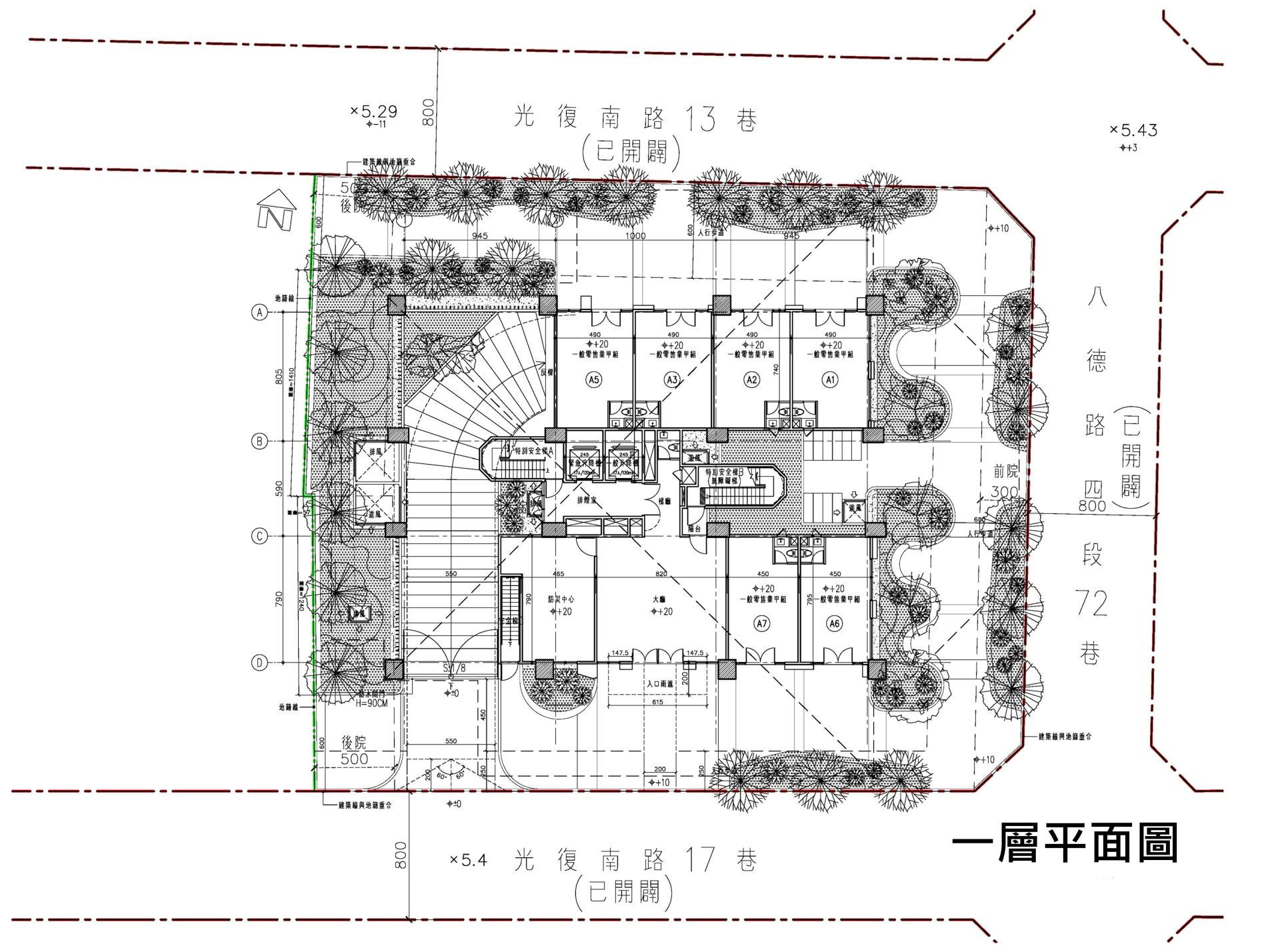 建築量體集中設置,基地沿街面皆退縮留設6公尺、2.5公尺無遮簷人行道,形塑舒適安全之人行空間。