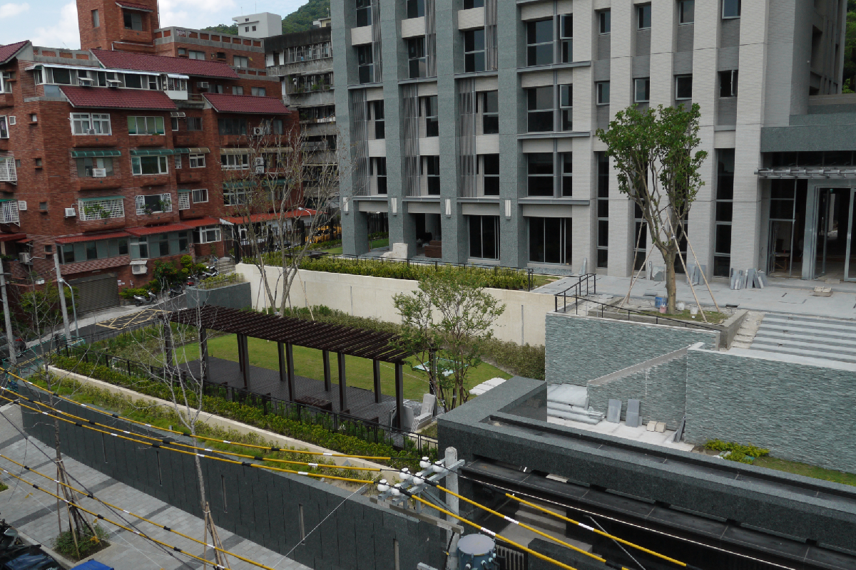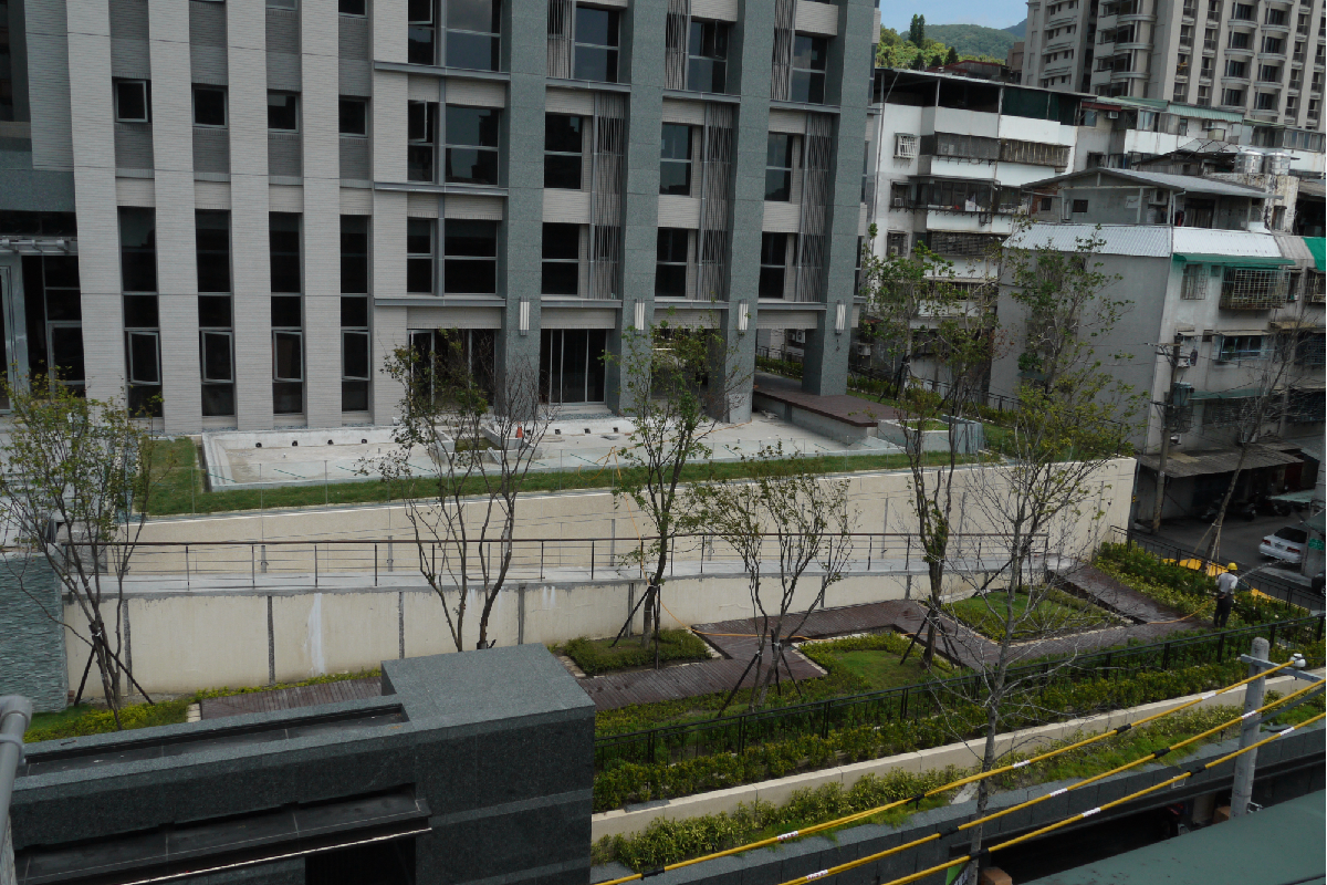 針對基地立地條件與高低差,以多層次的植栽增加視覺穿透性
